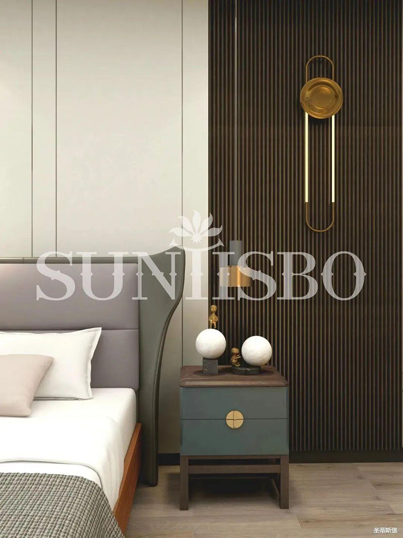 对称美是家装时的常见设计,但在卧室放置两个笨重的床头柜不仅占据空间布局,日常清理复杂,而且收纳功能也一般。床头柜通常是用来放置一些小物件,例如:手机、书、台灯或者闹钟等,因此一个简洁的边几就能满足日常需求。