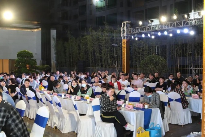 经销商晚宴当日晚6时许,以【乘“圣”跨越】为主题的,谈球吧集团第45届国际家具展接待晚宴暨2020年度优秀经销商颁奖盛典,在营销中心四楼景观花园隆重举行,来自全国各地的经销商朋友欢聚一堂,共同分享一场精彩纷呈的晚宴。