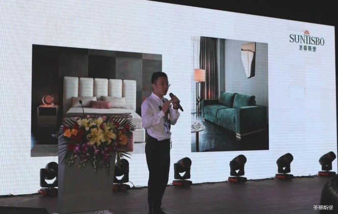 接下来,谈球吧集团执行董事王浩基先生上台发言,他对当前家具行业现状以及集团未来规划进行了全面的阐述,他将带领团队亲自研发新品简奢系列,并通过人群定位、户型定位以及渠道拓展对简奢系列深入解析。同时,他表示时代在进步,产品研发一定要紧跟时代的风口,将移动+整装定制结合原创,坚持推陈出新,迎接未来新趋势。