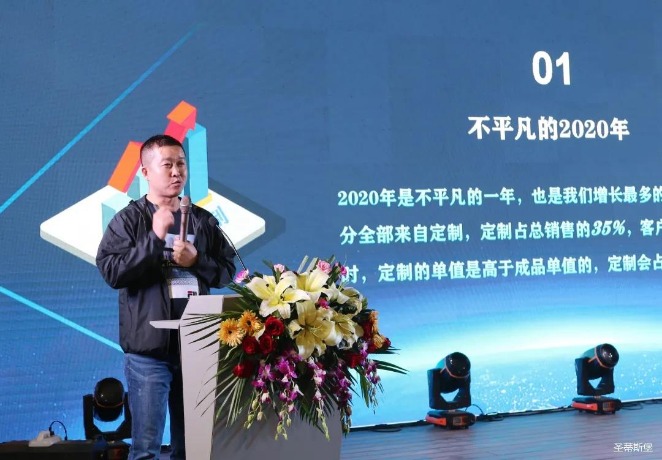 华灯璀璨的开场仪式,点燃了现场如火如荼的气氛。谈球吧集团营销总经理陈玉伟先生对晚会进行了主题发言,他对2020年的营销工作进行了总结,并着重从营销工作部署、重点项目开展、产品整合、拎包帮扶、渠道运营和移动+定制整装优势等方面对2021年的营销工作做了全面的统筹规划。同时,他还讲解了“美国梦凯莎床垫”新品的产品工艺、市场优势、产品定位,使经销商对我们的新产品拥有更深入的认识和了解。