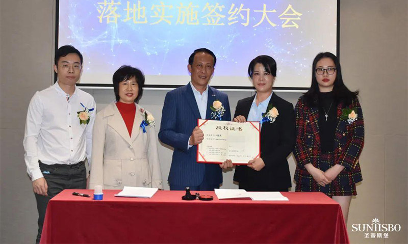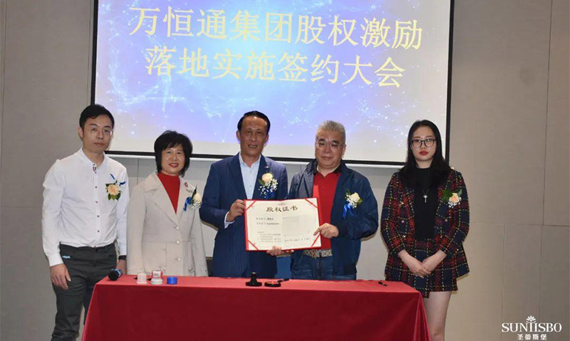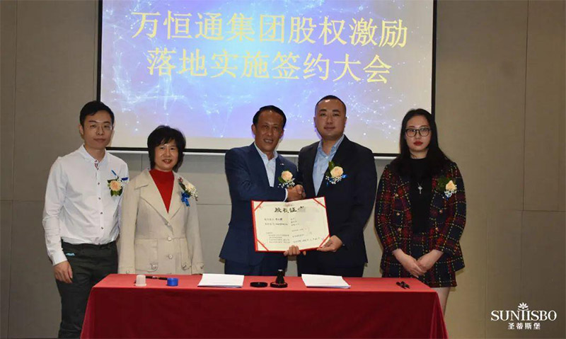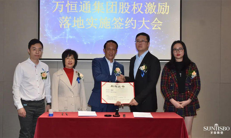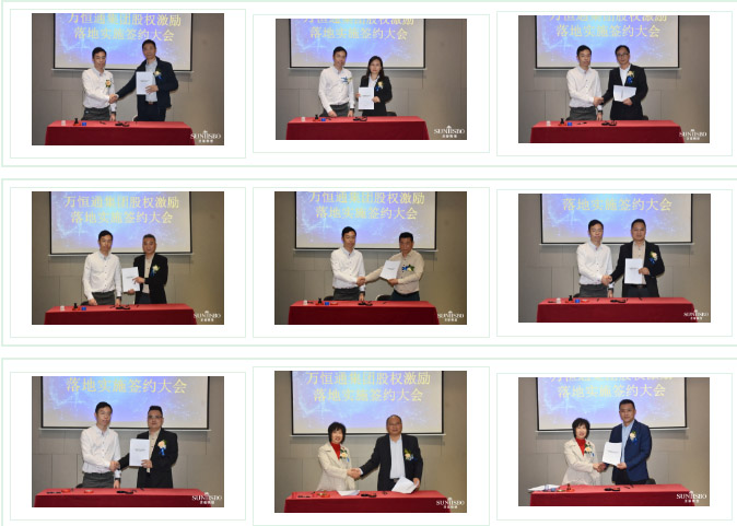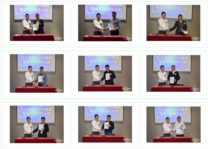谈球吧集团执行董事及法人代表王浩基先生正式为第一期六位虚拟受限股股东授予荣誉证书并签订股权分配协议。