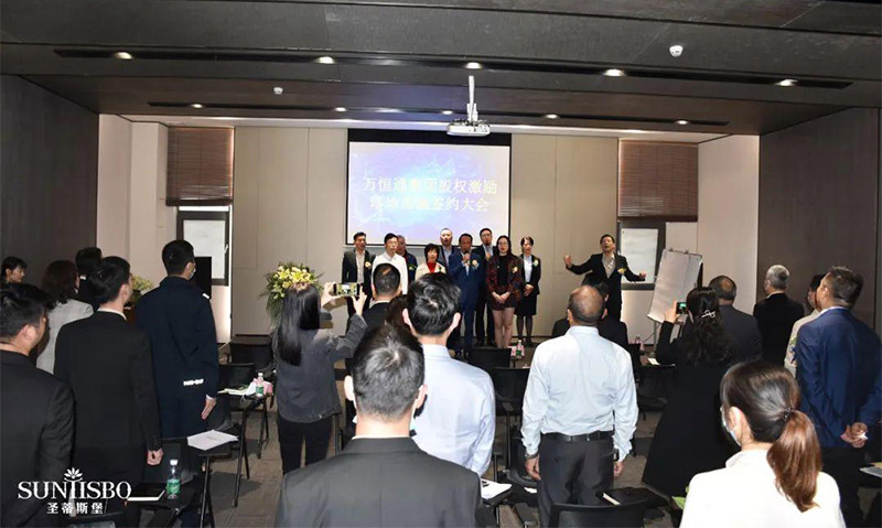 机遇与挑战并存,光荣与梦想同在,一个企业未来能走多远,不仅取决于领导者的高瞻远瞩,未雨绸缪,更离不开团队每一位家人的辛勤付出,“不积跬步无以至千里,不积小流无以成江海”,面对2020年疫情肆虐,经济下行的压力,谈球吧家人们众志成城,携手奋进,逆势而上,展现了一个企业的蓬勃生机和活力。为了给谈球吧家人搭建更好的晋升发展平台,激发昂扬奋斗的动力,2021年1月26日,谈球吧集团股权激励发布大会在圣蒂斯堡三楼会议室成功召开。