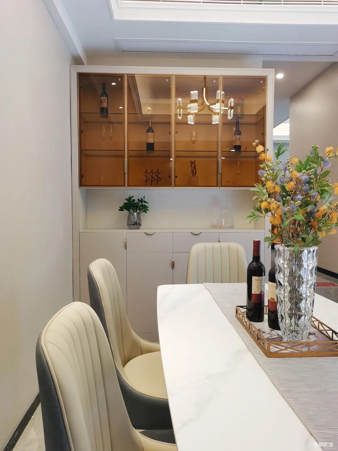 开放式的餐厨设计让餐边柜和橱柜的居家动线更为流畅,成了最便利的收纳场所,生活小资而又美好。
