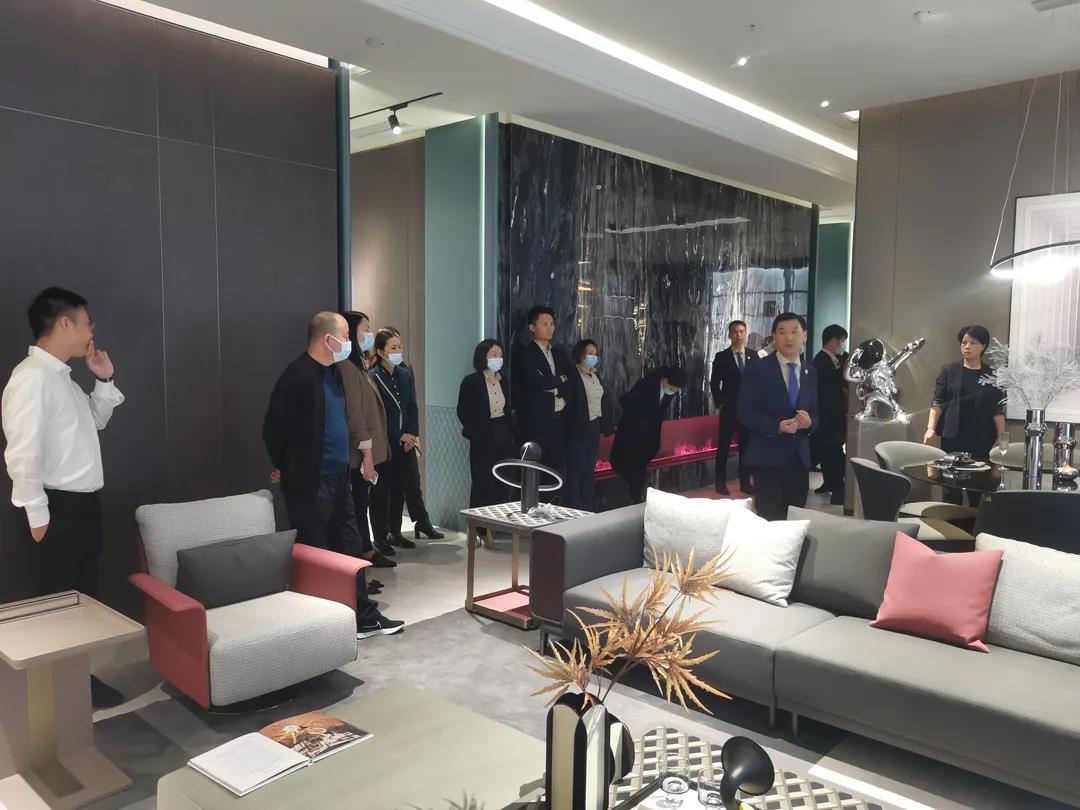 随后,嘉宾们迫不及待地移步至位于集团营销中心三楼的新品牌【西瑞】展厅。在潮味十足的展厅内,集团营销总经理陈玉伟先生围绕着新时代下家居行业的发展趋势,对西瑞产品架构和矩阵进行了深度解析,并为嘉宾们全方位介绍了西瑞的产品定位,材质工艺,以及“整装定制·全案设计”的发展方向。全新的设计视角、个性十足的产品设计引来了现场嘉宾们的驻足品鉴。系列产品的“时尚新锐”、“潮流大气”、“高级质感”、以及极具新青年格调的定制空间赢得了现场嘉宾的由衷赞誉和高度认可。