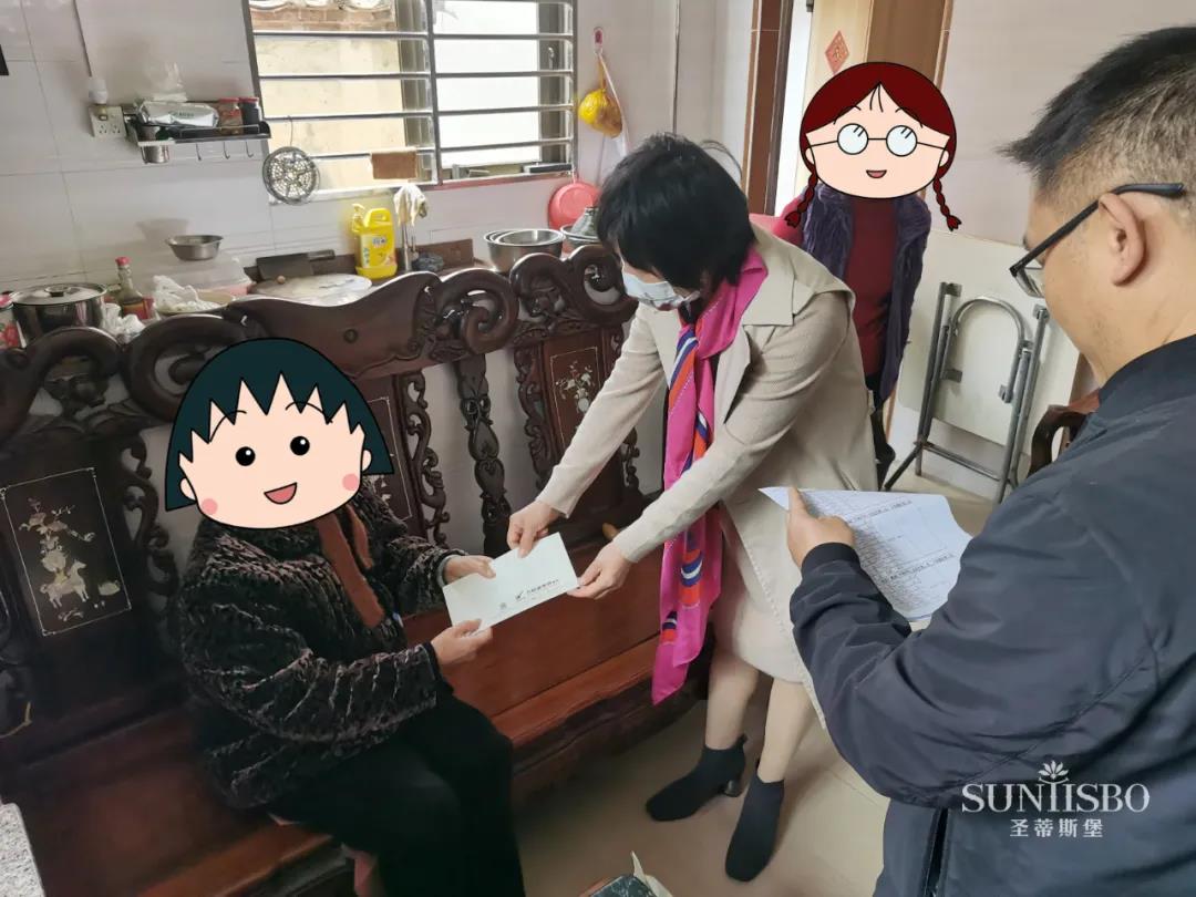 在各社区干部与谈球吧集团副董事长梁碧霞女士的带领下,我们带着爱心满满的新年礼品与祝福,来到集团制造中心所在地的各个社区,并亲切慰问了他们日常生活、身体情况以及存在的具体困难,认真倾听他们的心声,叮嘱他们在疫情期间一定要做好防疫并保重身体。通过慰问互动,进一步拉近了企业与社区群众之间的距离,体现了圣蒂斯堡品牌企业知恩图报回馈社会的行动和初心,体现了一个具有大爱觉悟企业的责任心和使命感。