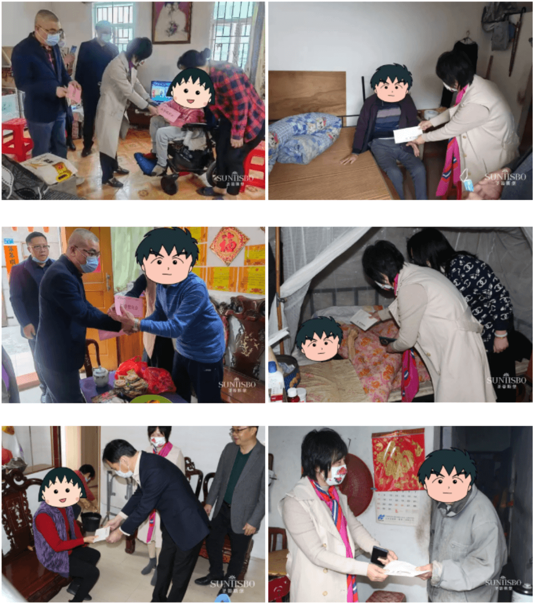 寒冬腊月,春节将至。2022年1月17、18日,谈球吧集团副董事长梁碧霞女士亲自带领集团员工分别前往常平土塘社区、虎门镇赤岗社区、虎门镇南面社区,探望慰问孤寡老人、残疾人和社区寿星,并为他们送去了春节礼品和慰问金,为他们送去一年一度的新春关怀和温暖。在疫情的严防中,让他们体会到社会和企业的悉心关怀,感受到别样温暖的春节氛围。