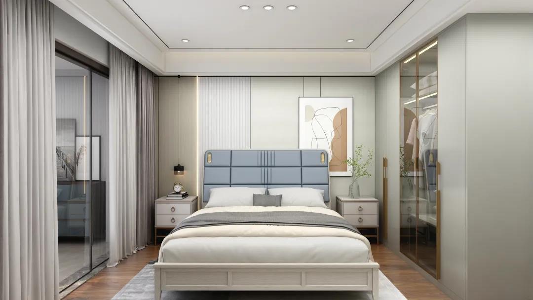 合理利用空间,这样主卧便集卧室、衣帽间为一体,居住舒适度大大提升。营造了一个舒适度满满的私密空间。