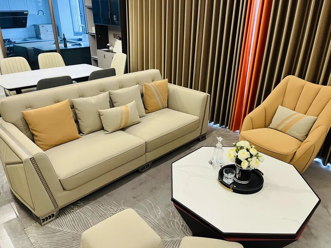 材质碰撞,柔和的色调与硬朗的线条互补,